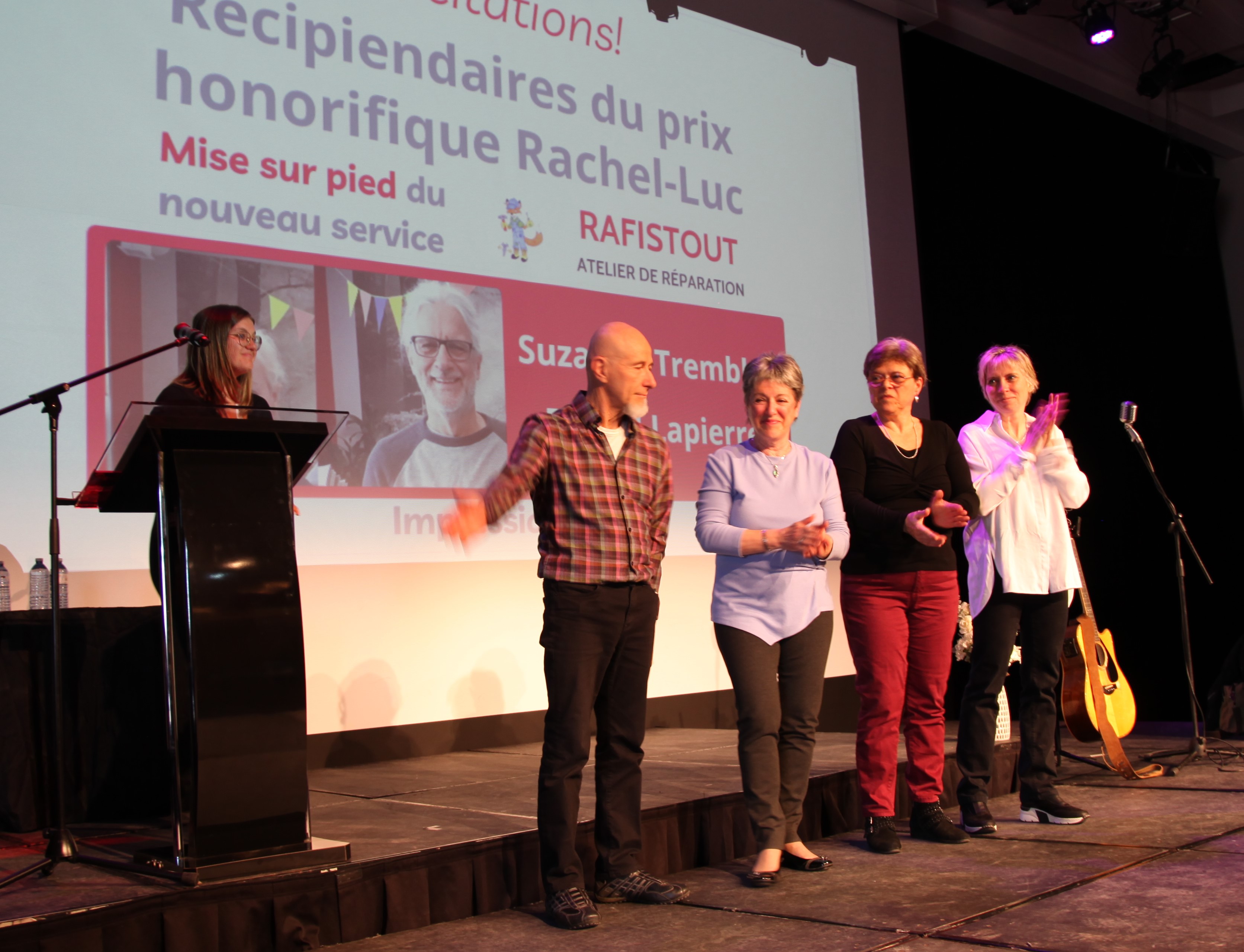 Se déroulant en formule quatre-à-six, l’événement a débuté par une période d’allocutions et la remise de certificats de reconnaissance aux bénévoles ayant cumulé 5, 10, 15 et 20 ans de service. Deux mentions honorifiques ont également été décernées : la Mention Benoît-Signori, remise aux bénévoles ayant cumulé au moins 110 heures de bénévolat par année durant 5 années consécutives, et le Prix Rachel-Luc, qui souligne l’implication de bénévoles ayant démarré un nouveau service au CABB. Cette année, c’est le couple composé de Suzanne Tremblay et de Daniel Lapierre, initiateurs de l’Atelier de réparation Rafistout, qui s’est mérité cet honneur. |